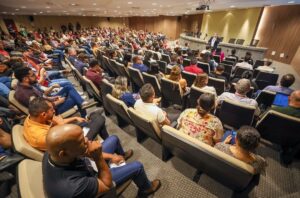 A programação iniciou com duas palestras ministradas por instrutores da Fundação Escola de Governo do Maranhão (EGMA). O professor Márcio Carneiro, doutor em Tecnologias da Inteligência e Design Digital pela PUC-SP, abordou o tema “Aplicação da Inteligência Artificial na Gestão Pública”, destacando o potencial da IA para aprimorar a tomada de decisões e otimizar fluxos administrativos.